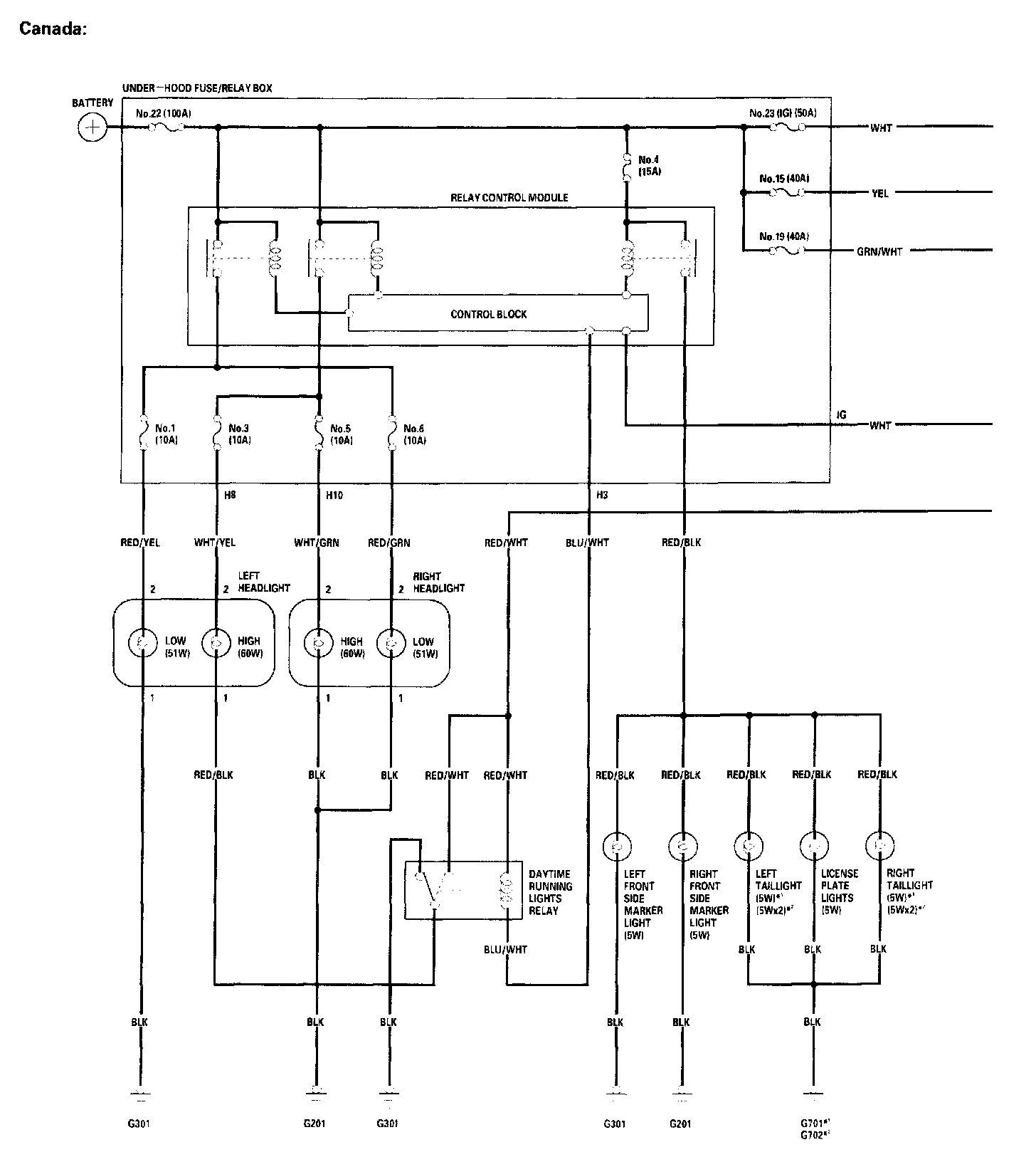 Exterior Lights - Circuit Diagram (Canada) Part 1: