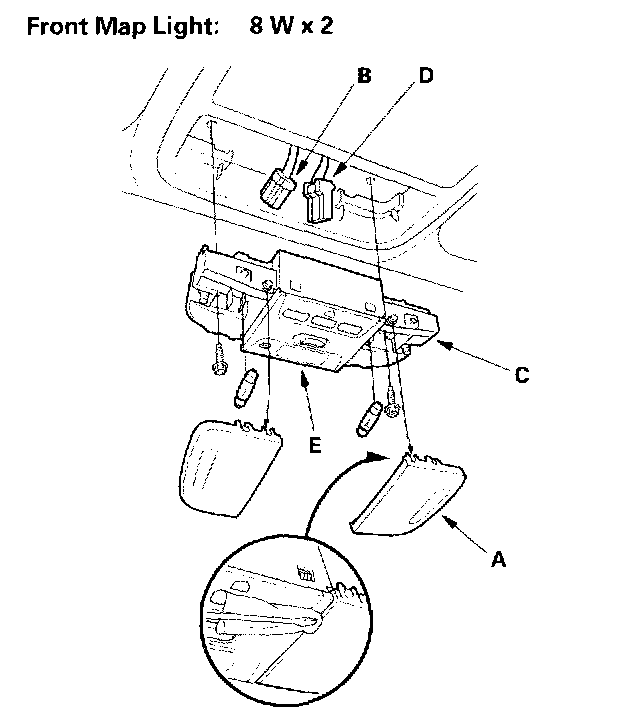 4. Disconnect the 8P connector (D) from the ambient light (E).