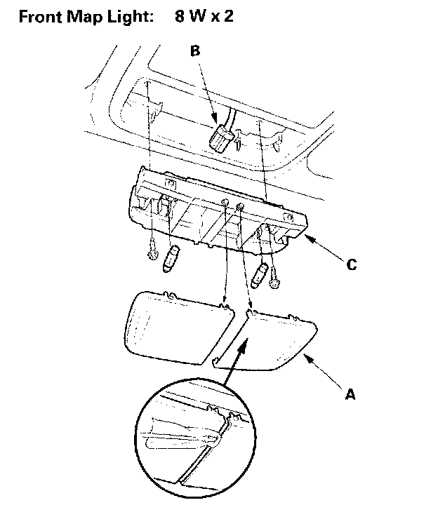 1. Carefully pry off the lens (A) with a small screwdriver.