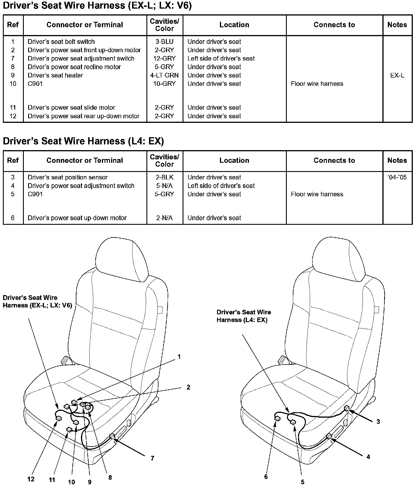 Driver's Seat Wire Harness (EX-L; LX: V6)/ Driver's Seat Wire Harness (L4: EX):