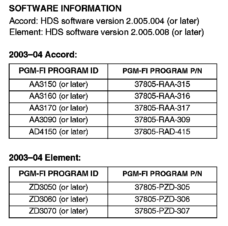 1. Update the PGM-FI software (refer to Service Bulletin 01-023, Updating Control Units/Modules).