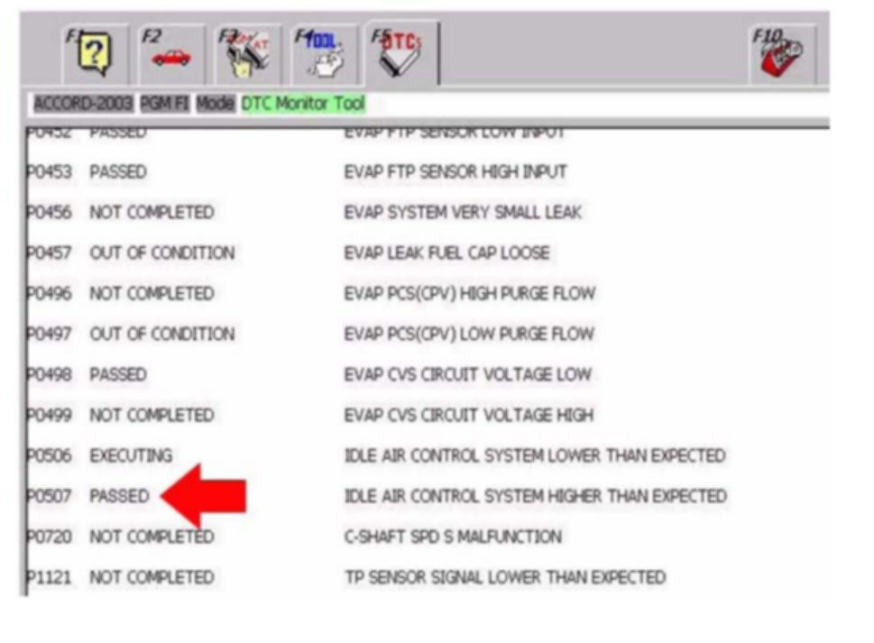 ^ If the P0507 OBD STATUS shows "PASSED," return the vehicle to the customer.