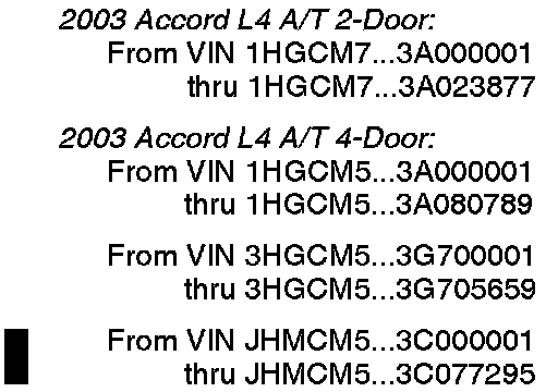* In addition to the bulleted verification items, check for a punch mark above the ninth character of the engine compartment VIN. A punch mark in that location means the no-reverse condition has already been corrected.*