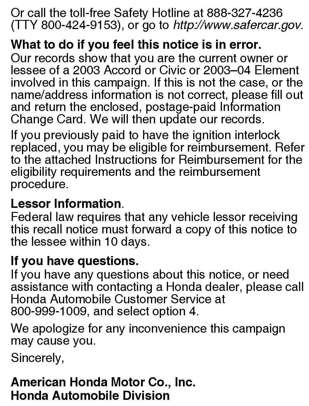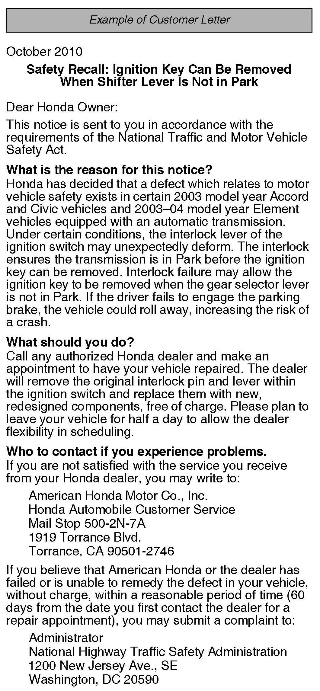 Recall - Ignition/Shift Interlock Defect