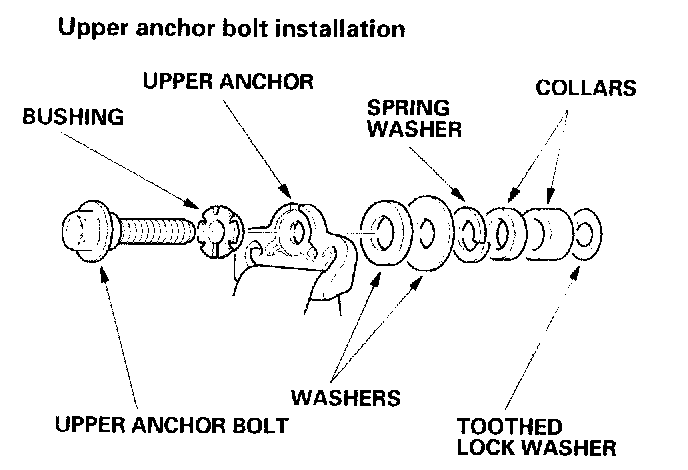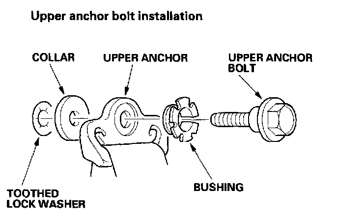 - Assemble the washers, collar and bushing on the upper and lower anchor bolts as shown.