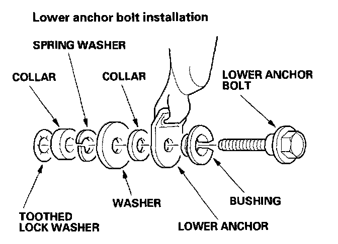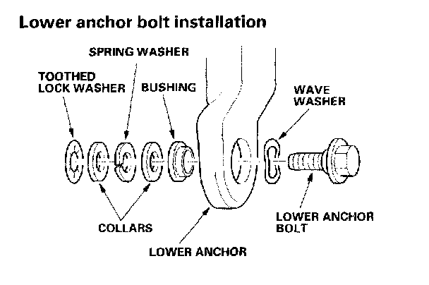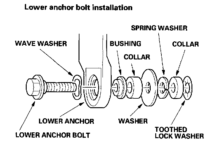 - Assemble the washers, collar, and bushing on the lower anchor bolt as shown.