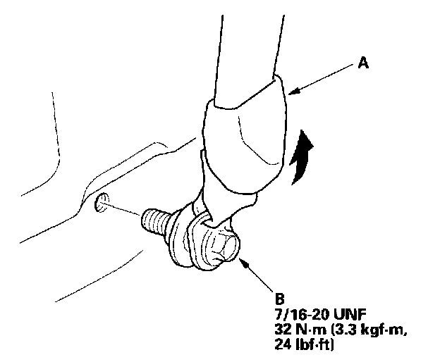 4. Remove the lower anchor bolt (A), then remove the lower anchor (B).