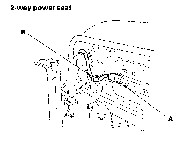 5. Detach the seat belt switch connector (A) and harness clip (B).