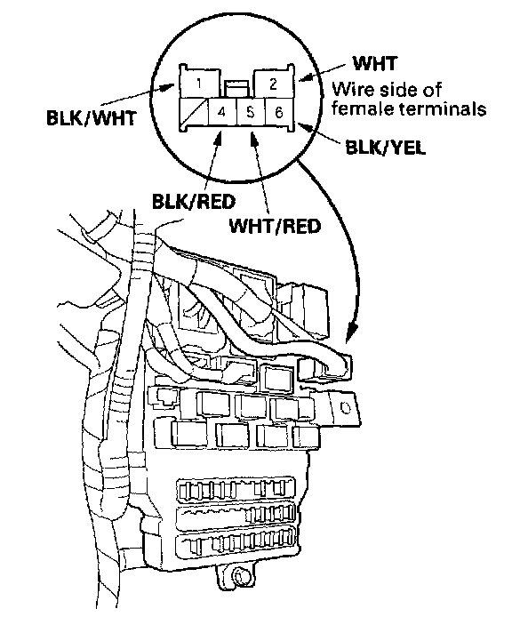 5. Disconnect the 6P connector from the driver's under-dash fuse/relay box.