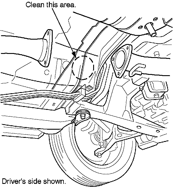 11. Remove all sealer and paint from the wall of the floor tunnel in the area shown. Do this on both walls of the floor tunnel.