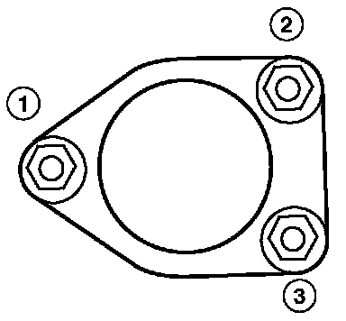 17. Reinstall the catalytic converter with new gaskets and self-locking nuts. Torque the nuts to 33 N.m (25 lb-ft) in the sequence shown.