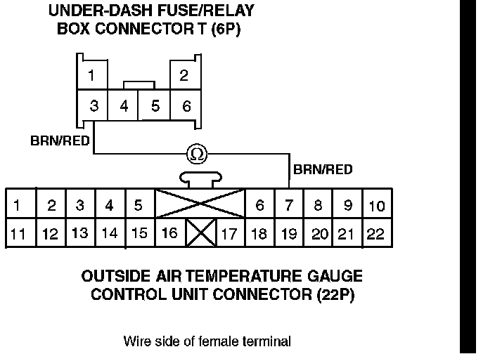 NO - Repair the open in the BRN/RED wire between terminal No. 3 of the under-dash fusel relay box connector T (6P) and terminal No. 7 of the outside temperature sensor connector (22P).[]