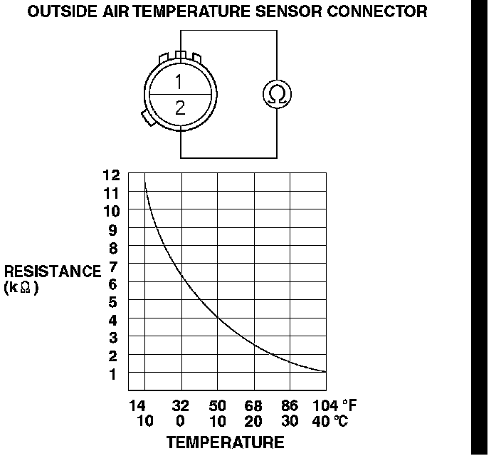 6. Check the resistance of the outside air temperature sensor.