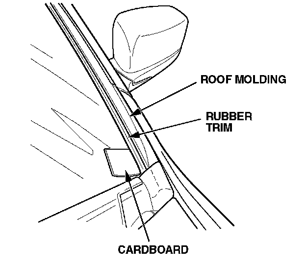 2. On the side you heard the noise, stick a piece of cardboard (at least 0.4 mm thick) between the roof molding rubber trim and the lower corner of the windshield.