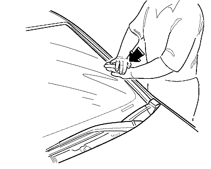 1. Make sure the roof molding clips at the lower corner of the windshield are fully engaged by gently rotating the molding edge up and down while pulling inward across the glass.