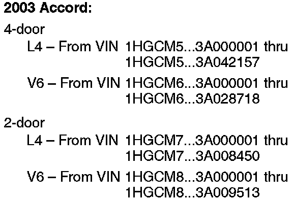 2003 Accord - See VEHICLES AFFECTED