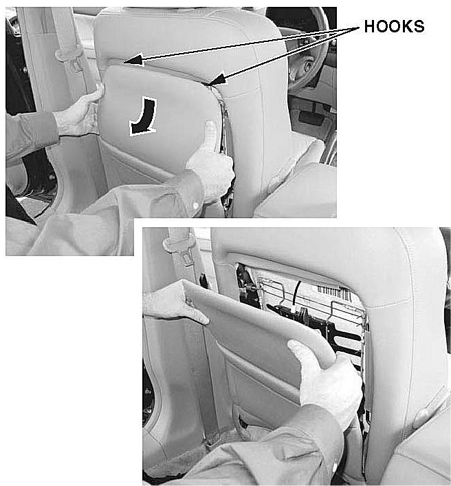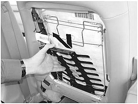 22. Make sure all the linkage components are properly positioned, then install two new seat-back panel clips, and install the panel.