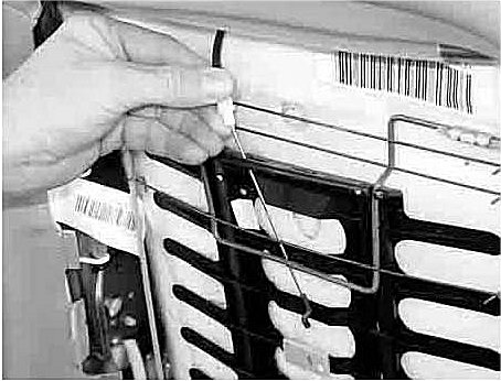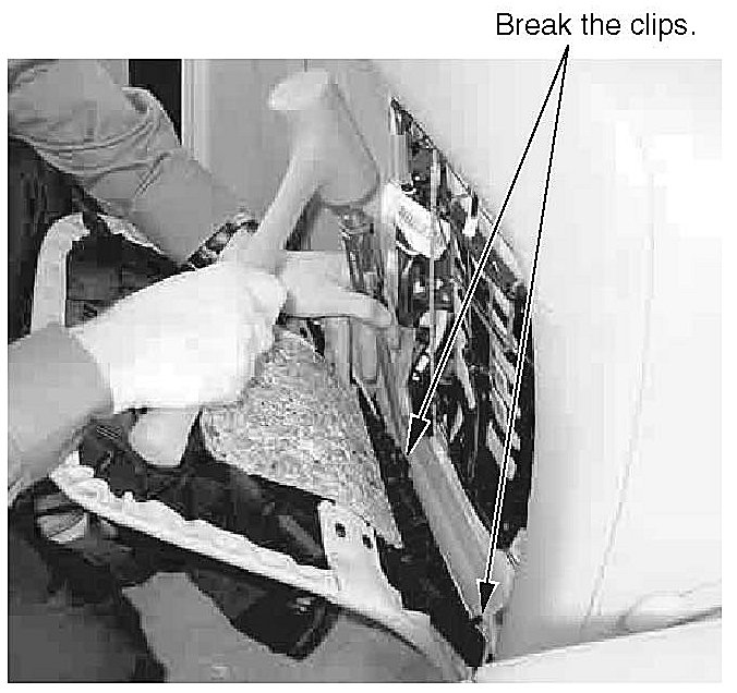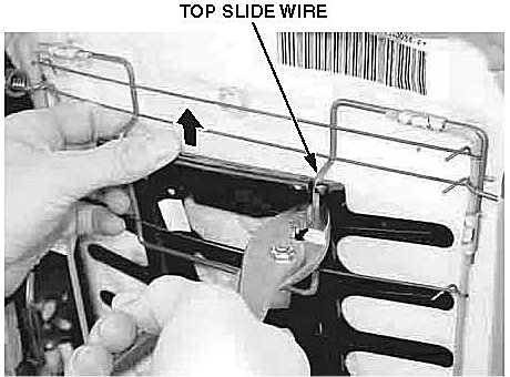 9. Lift the basket as high as possible. Using a pair of pliers, remove the top slide wire from the right side of the basket. Release the left side by hand.