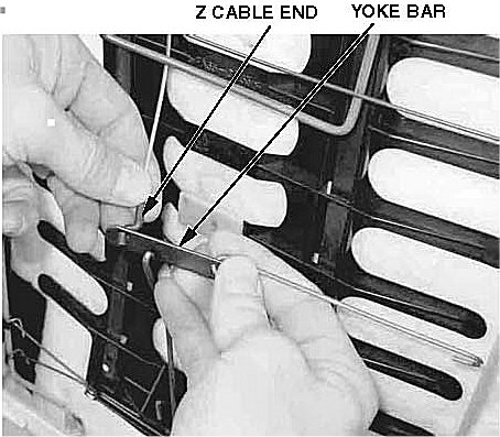 6. Disconnect the Z-shaped, cable-end fitting from the yoke bar.