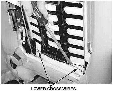 10. Using a flat-tip screwdriver, pop the lower cross wires from the basket.