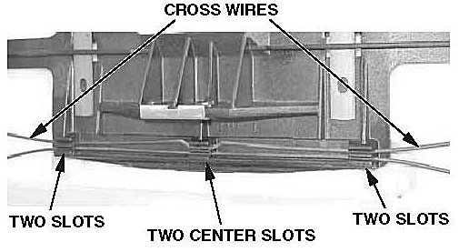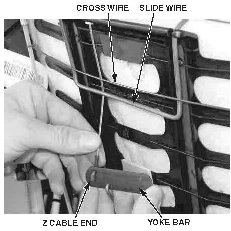 17. Install the cable into the basket, then route the cable behind the slide wire and the cross wire.