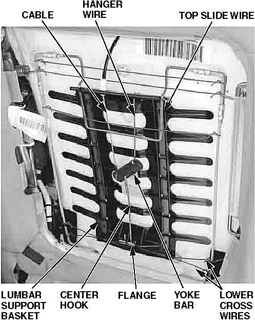 12. Slide the new basket between the seat foam and the slide and cross wires.