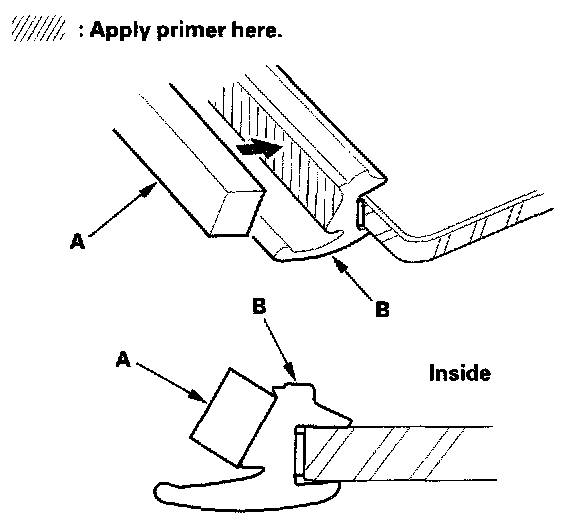 - Never touch the primed surfaces with your hands. If you do, the adhesive may not bond to the windshield properly, causing a leak after the windshield is installed.