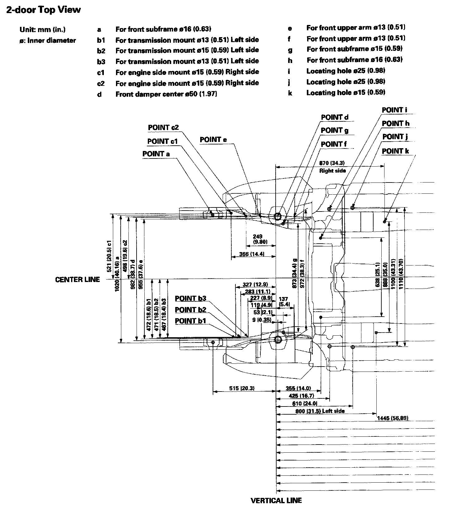 Frame Repair Chart - 2-door Top View Part 2 Of 2: