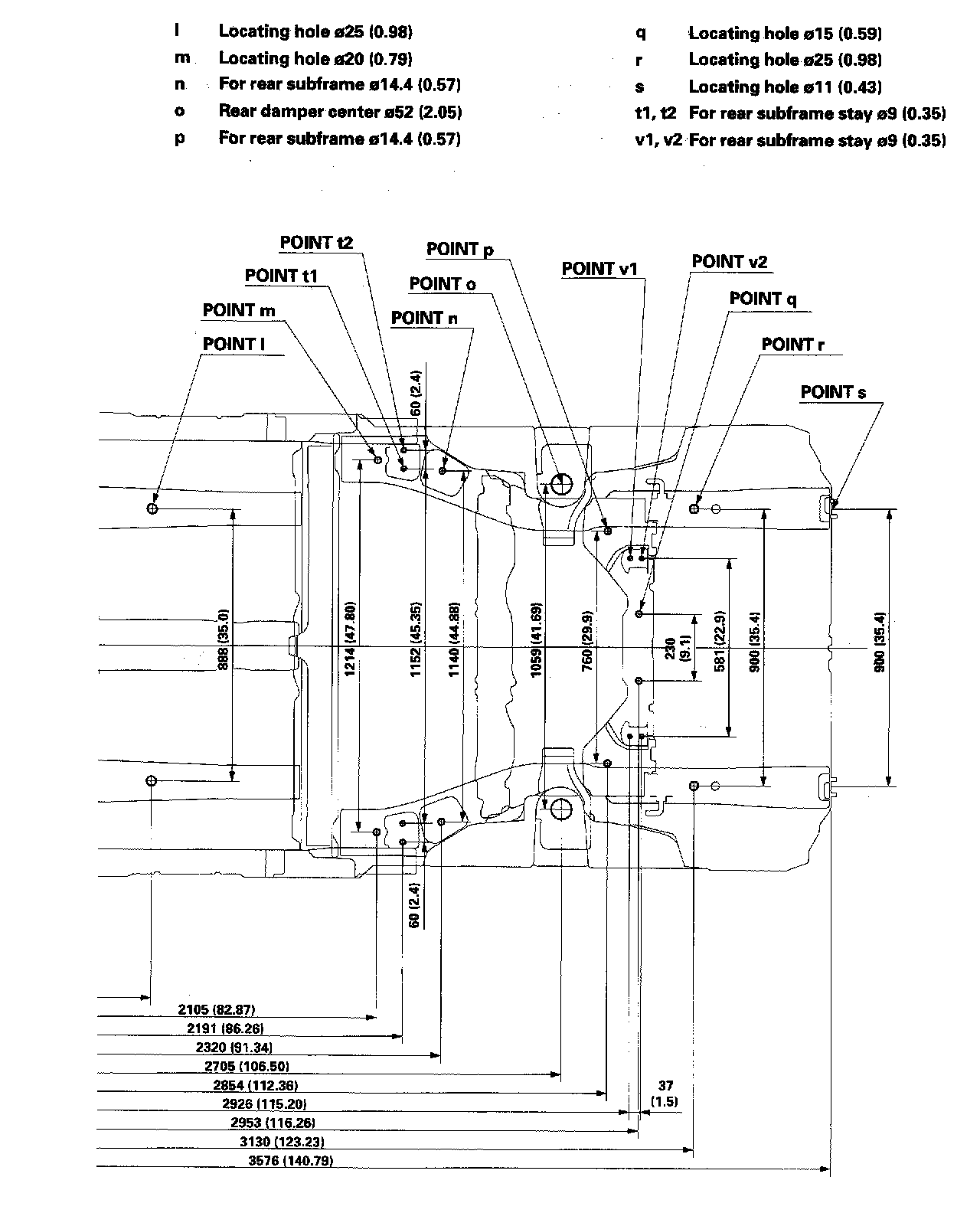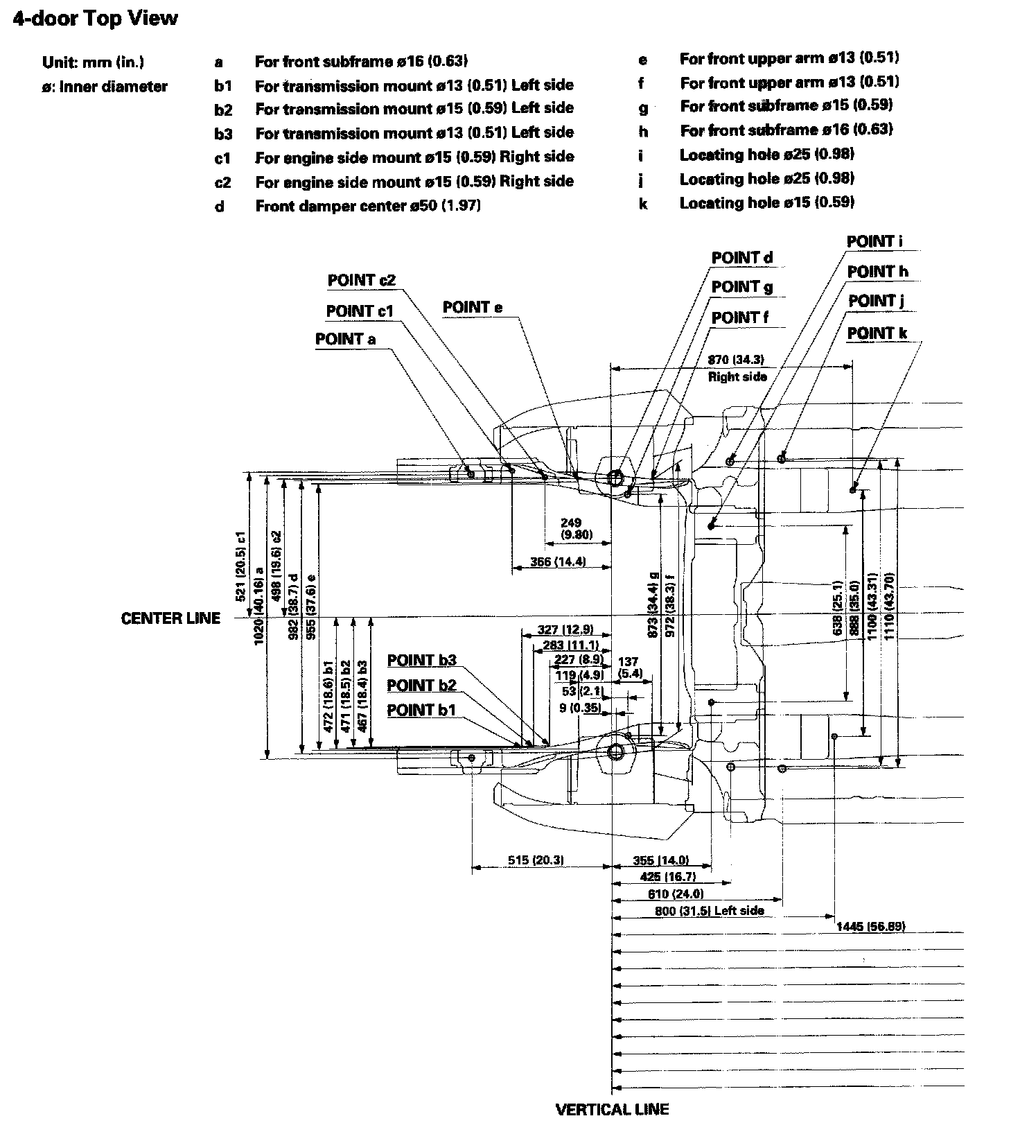 Frame Repair Chart - 4-door Top View Part 2 Of 2: