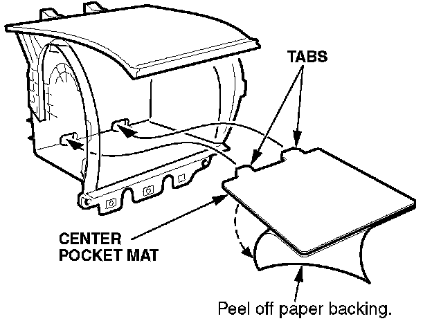 5. Peel off the paper backing, and install the new mat in the center pocket. Starting with the tabs, smooth out the mat with your fingers to ensure good adhesion.