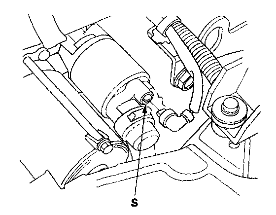6. Make sure the transmission is in neutral, then disconnect the BLK/WHT wire from the starter solenoid S terminal. Connect a jumper wire from the battery positive terminal to the solenoid terminal.