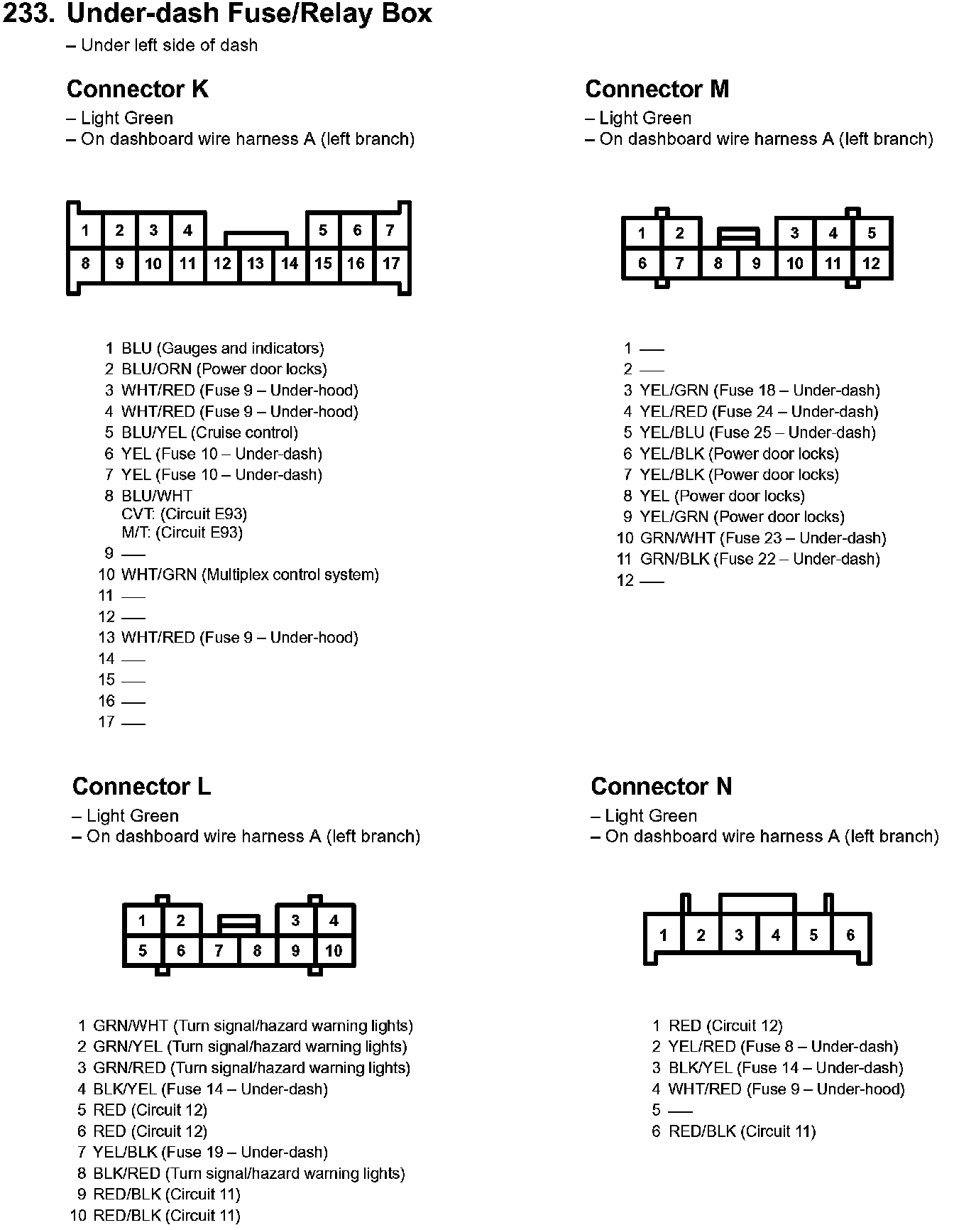233. Under-dash Fuse/Relay Box Part 1: