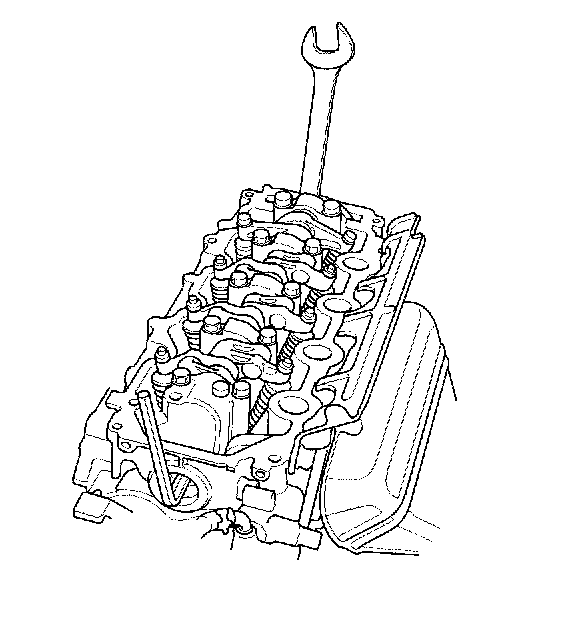 4. Hold the camshaft with an open-end wrench, then loosen the bolt.