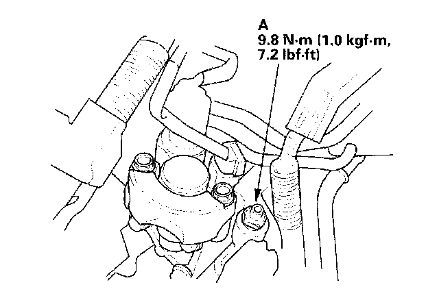8. Loosen the air bleed bolt (A) on the connecting pipe joint.