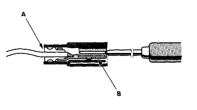 3. If you cannot get to the wire side of the connector or the wire side is sealed (A), disconnect the connector and probe the terminals (B) from the terminal side. Do not force the probe into the connector.