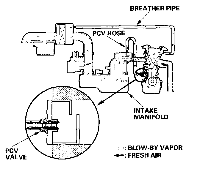 The PCV valve prevents blow-by gasses from escaping into the atmosphere by venting them into the intake manifold.