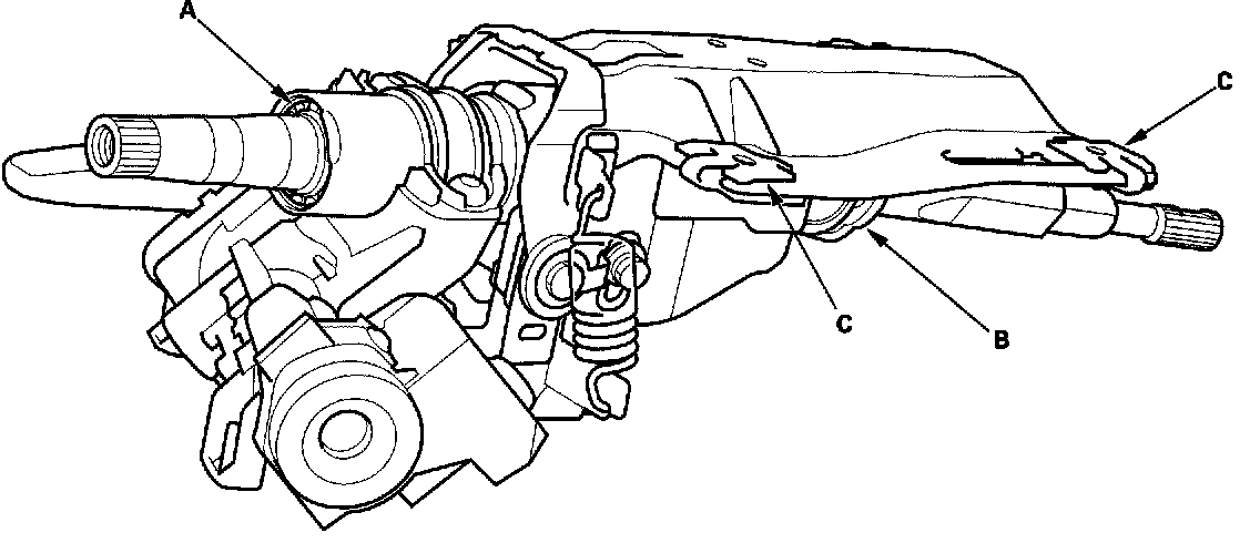 - Check the sliding capsules (C) for distortion and breakage. If there is distortion or breakage, replace the steering column as an assembly.