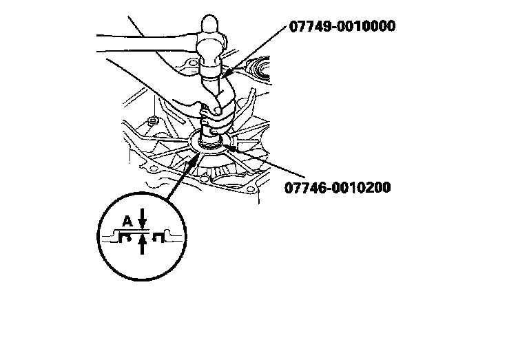 2. Install the new oil seal flush with 3±0.5 mm (±0.02 inch) (A) flywheel housing level.