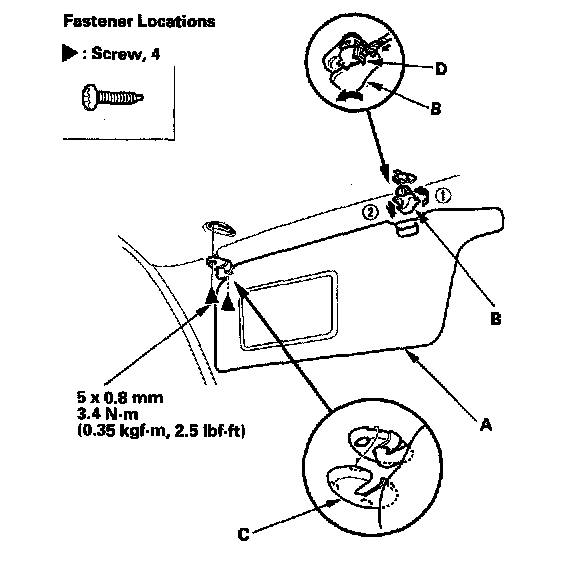 - If the threads on a visor or grab handle screws are worn out, use an oversized self tapping ET screw (P/N 90137-SOA-003) made specifically for this application.