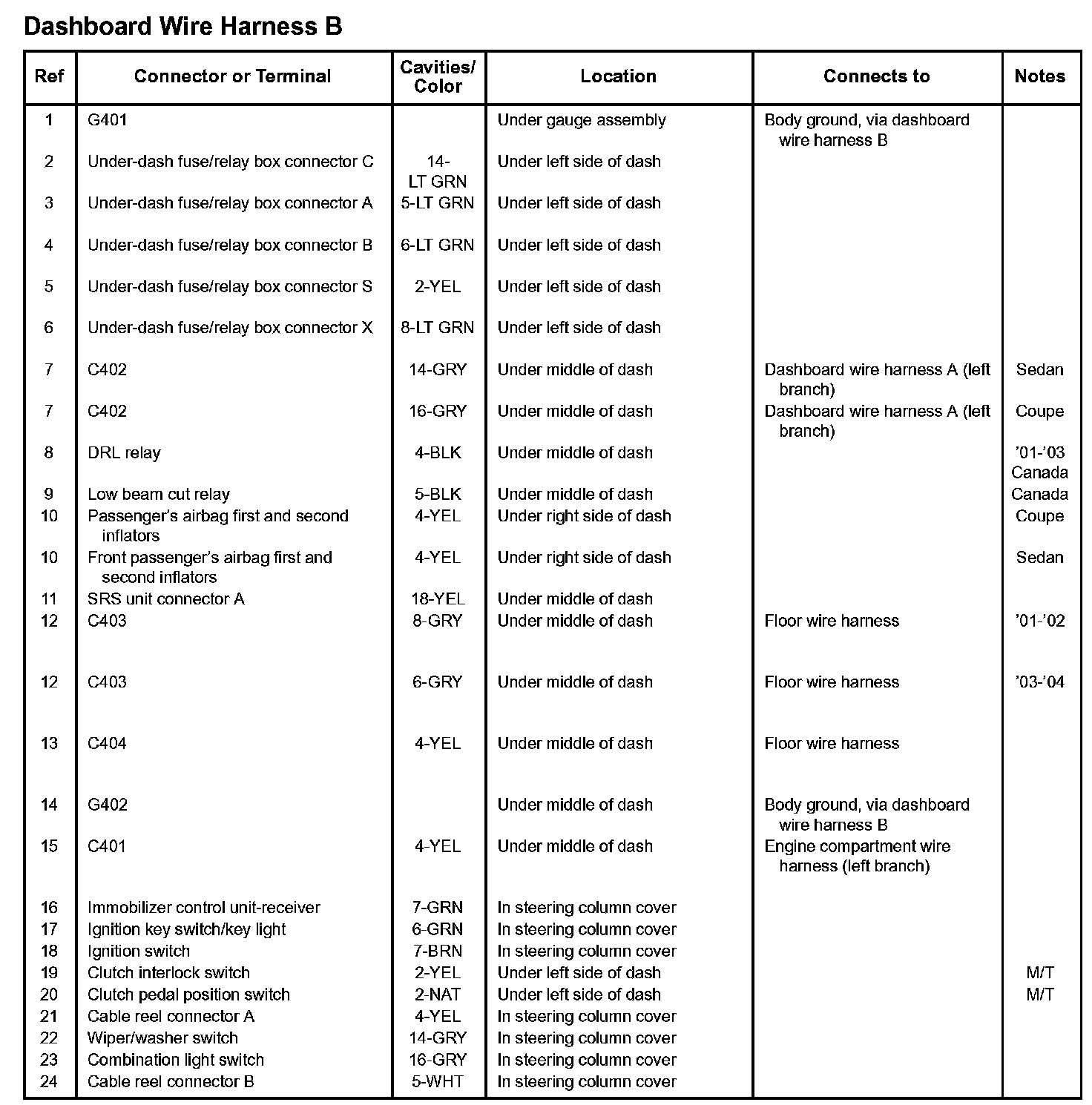 Dashboard Wire Harness B: