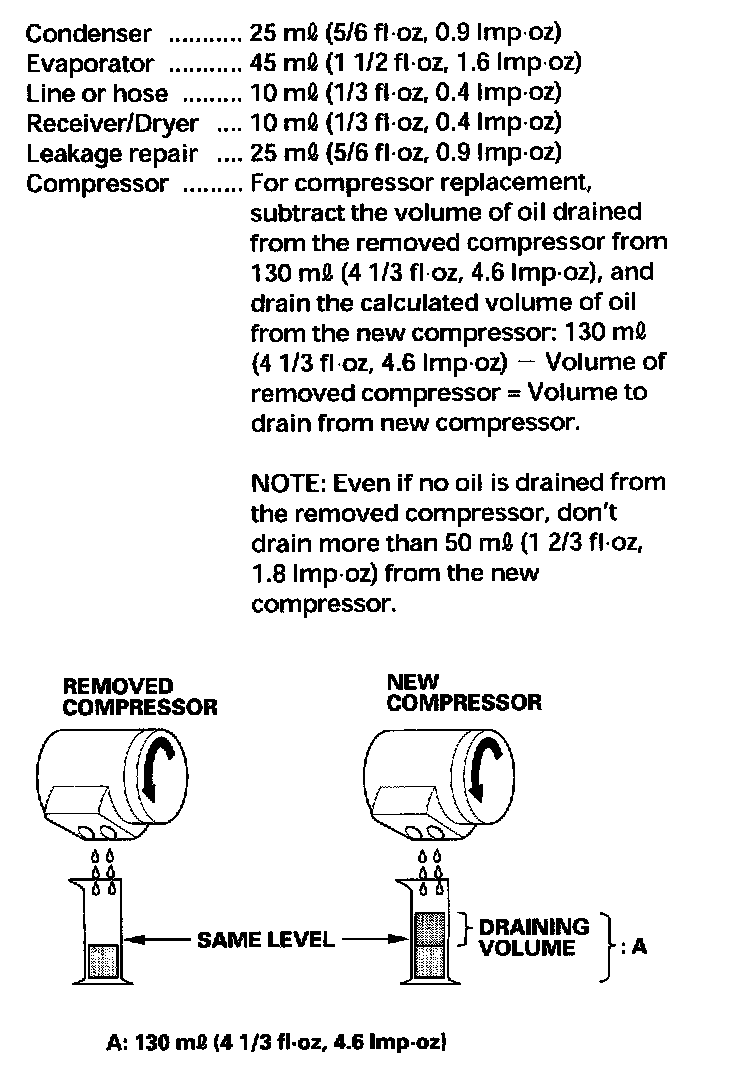 A/C Refrigerant Oil ReplacementRecommended PAG oil: SANDEN SP-10: