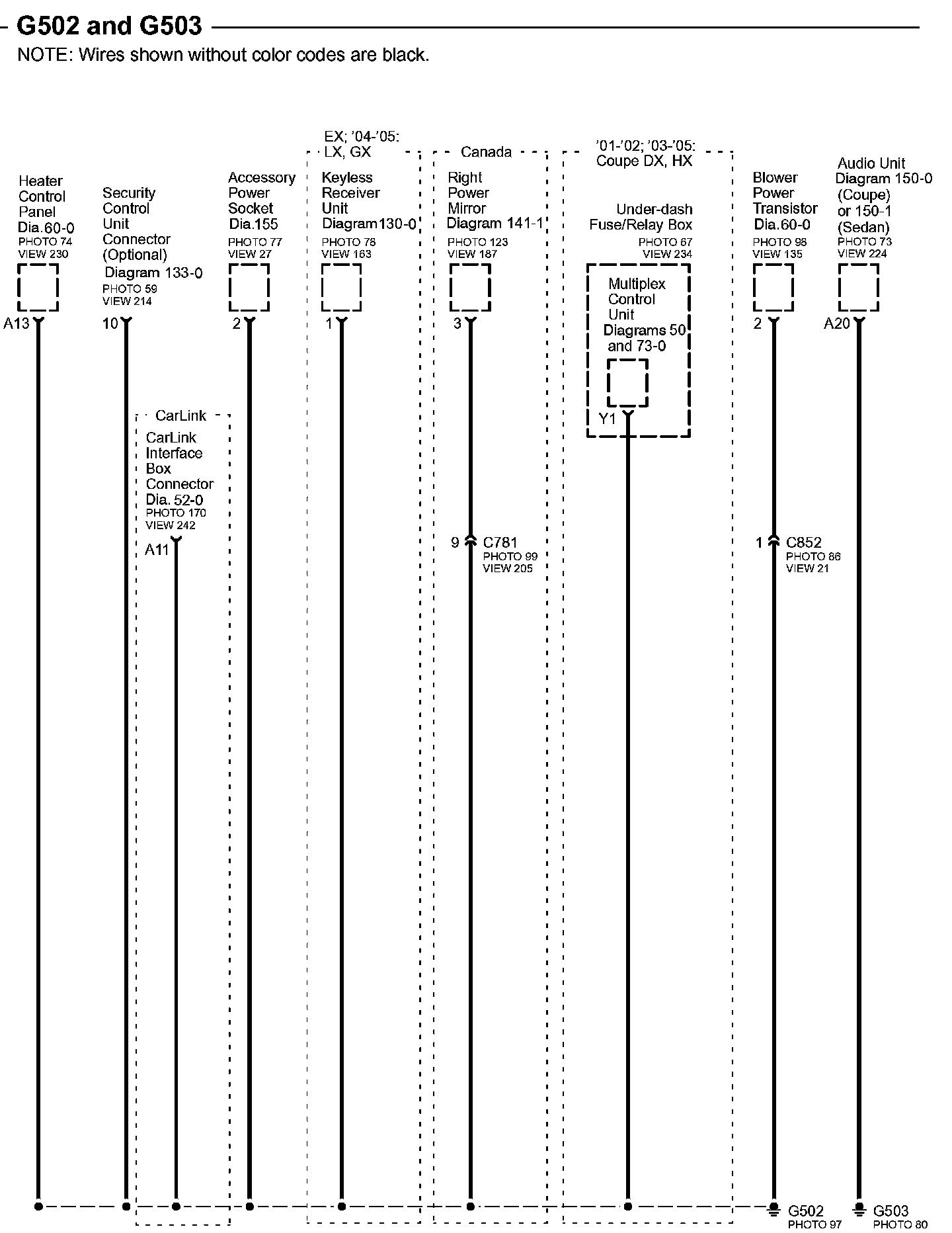 Connector Views: Connector terminal views (references to VIEWS) referred to within these diagrams can be found at Connector Views by View Number. Connector Views By View Number