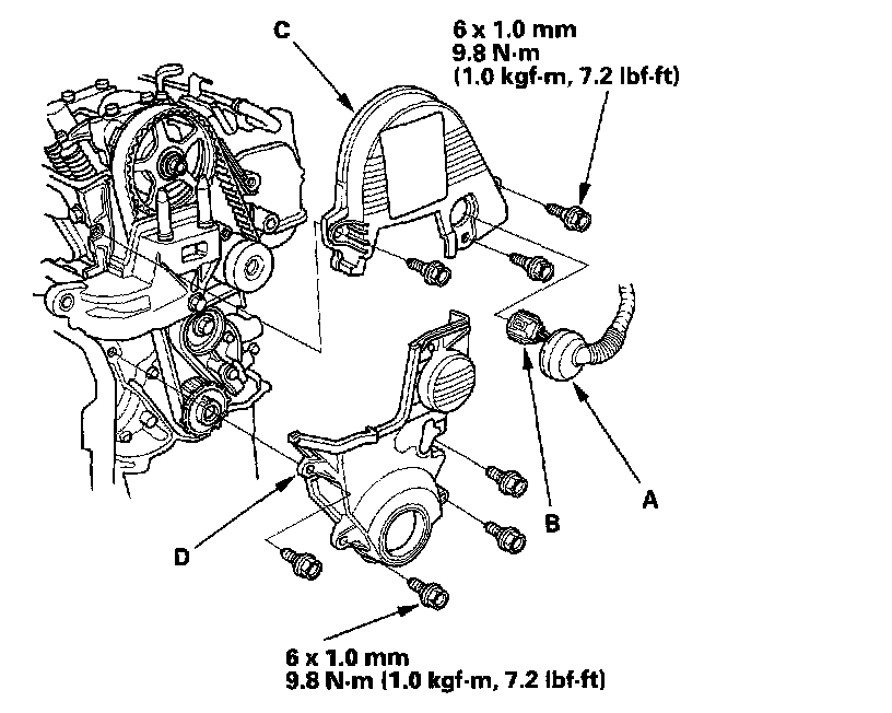 CKP Sensor Replacement1. Remove the grommet (A) from the upper cover, and disconnect the camshaft position (CMP) (top dead center (TDC)) sensor connector (B).