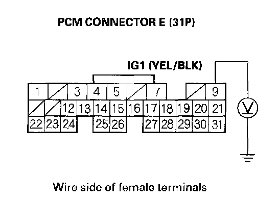 25. Check for continuity between PCM connector terminal E9 and body ground.