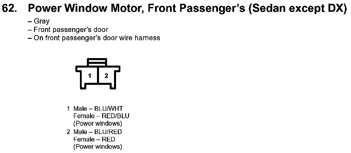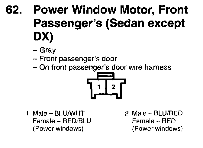62. Power Window Motor, Front Passenger's (Sedan Except DX):