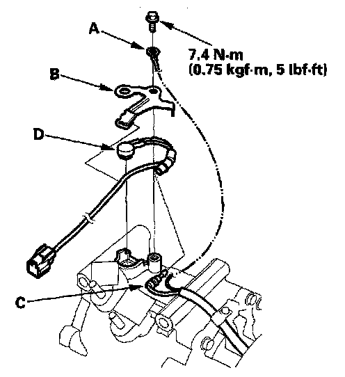 Compressor Thermal Protector Replacement1. Remove the bolt, the ground terminal (A), and the holder (B). Disconnect the field coil connector (C), then remove the thermal protector (D).