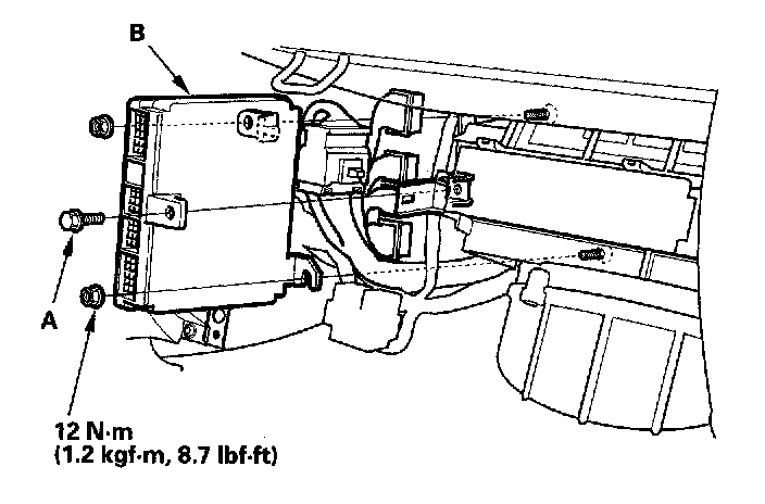 5. Remove the nuts, then remove the ECM/PCM (B).