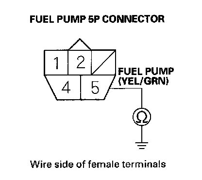 31. Check for continuity between fuel pump 5P connector terminal No.5 and body ground.