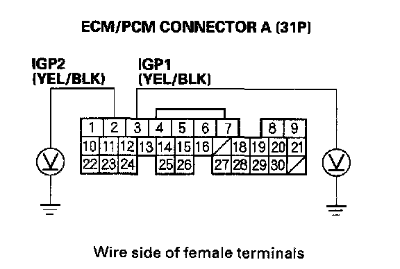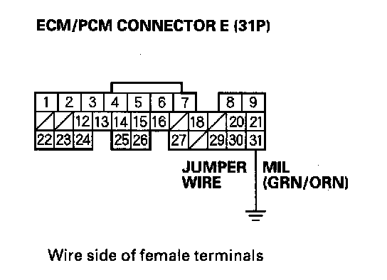 12. Connect ECM/PCM connector terminal E31 to body ground with a jumper wire.