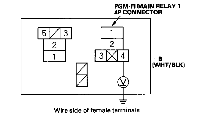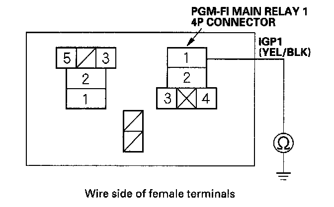 18. Check for continuity between body ground and PGM-FI main relay 1 4P connector terminals No.2 and No.4 individually.